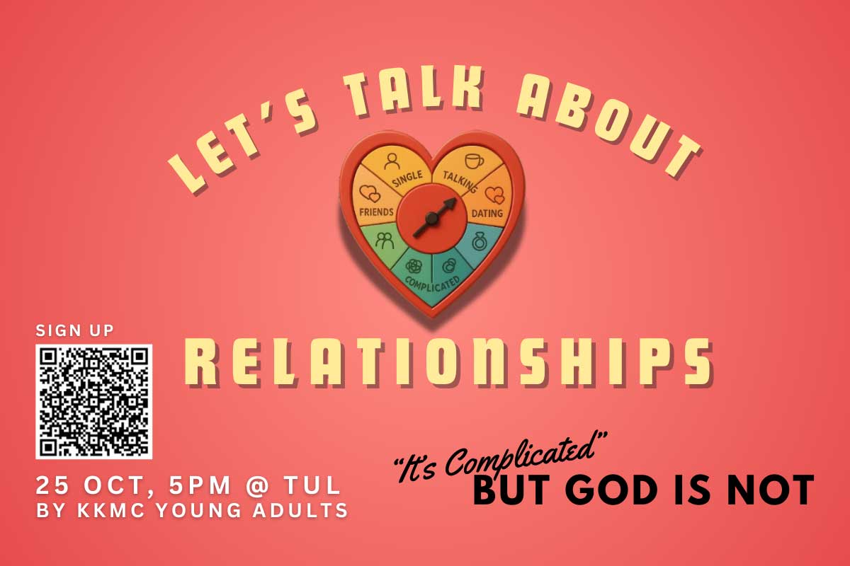 Young Adults go through varying seasons of the heart and while the season of singleness or relationships are made out to be “complicated”, we know our God is not. Hear from Pastor Anthony (Kampong Kapor Methodist Church) and Pastor Joey (Paya Lebar Methodist Church) on what the Bible says about marriage, singleness and how we can steward our respective seasons by putting God at the centre of it all!